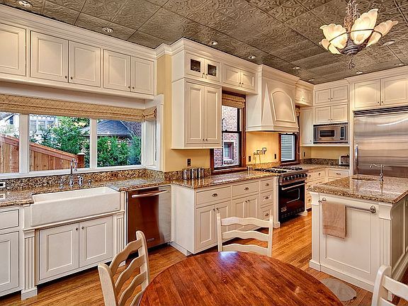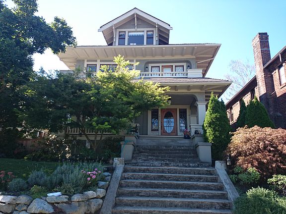 FOR A 24 HOUR RECORDED AUDIO TOUR CALL: 1.800.779.4232 X2342 Stately old-world elegance meets modern convenience in this completely updated 1909 Foursquare classic boasting amazing views of Lake Washington, the Bellevue skyline, and the gorgeous Cascade range. Remodel went above and beyond with high-end fixtures, woodwork, millwork, sprinkler system, and intricate details inside (5 roomy bedrooms and 3.75 bathrooms) and out (immaculate landscaping) while maintaining the original charm and grace throughout its 5040 square feet. Rich, warm wood glows everywhere you look: rare quarter-sawn oak, original hardwood floors in the first-floor dining and living areas, box beam ceilings, columnar room dividers, and more. Functional layout welcomes abundant natural light throughout, creating inviting spaces to entertain company or family, prepare meals, and relax in luxury. Usher guests from the warm foyer into the expansive formal dining room for classy dinner parties; invite them to kick back in the great room with a built-in TV, surround sound, and Blu-ray entertainment system; throw open all eight French doors to the open air and serve dinner and drinks on the huge patio or deck (with a view!) in summer months. No matter your event, or late-night craving, the open kitchen is fit for a culinary king, with a tin ceiling, farmer's sink, Viking appliances, and slab granite all complementing pristine white cabinetry. A spacious island could double as a bar or impromptu dining table. Wherever you and your visitors clink glasses, a fireplace is nearby; three of them provide winter warmth and swanky atmosphere. At the end of the day, retire to your indulgent master suite with attached bath, claw-foot tub, walk-in closet, dressing area, and private view deck. Stay-over guests will love the other baths, one featuring a steam room. Customization options abound above and below! Storage space awaits in the finished basement, along with room for the wine connoisseur's upscale cellar. A rare opportunity to call one of Capitol Hill's chic, quiet streets home - where you will be blocks away from trendy restaurants and nightlife, moments from downtown, and minutes from freeway access to all of Puget Sound. Plenty of off-street parking and two designated spots (easily converted to covered carport or garage) is the icing on the cake.