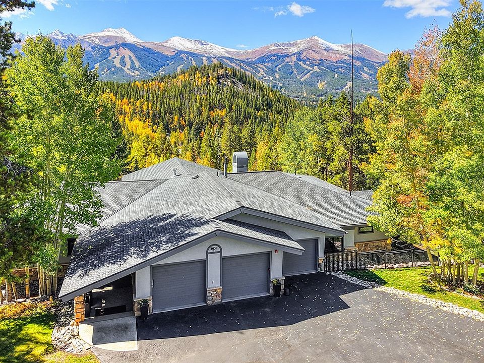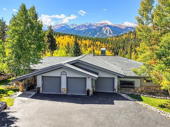 If majestic views, privacy and walking distance to town is what you are looking for then this is the home for you! This beautifully remodeled 4 bedroom, 5 bath, 4278 sqft home with a ranch style floor plan and sweeping views of the ski area on a private 2 plus acre lot is a one of a kind in Breckenridge. The large west facing covered deck with heated bench seating, a glorious firepit and an outdoor kitchen, invites you to sit and enjoy the sunsets over the Ten Mile range. A full wall of west facing windows warms the entire home. You enter the house to the marvelous living/dining room that is large enough to hold the entire family for all the holidays. The remodeled kitchen with Thermador and Sub-Zero appliances, Homestead cabinets, a coffee bar and a cozy family room make for an excellent gathering space. The fantastic primary bedroom on the main level has sweeping views of the mountains and a wonderful on suite bathroom. The three quest bedrooms are large and welcoming. The lower TV room is perfect for fall football and all-night movies. It walks out to a private hot tub in the beautifully appointed grass yard with flower beds and an easement to the lower road for walking to town. The list of upgrades is extensive, including all new windows, epoxy floor in the garage with two ev chargers, roof, gutters, three gas fireplaces, flooring, lighting and blinds.