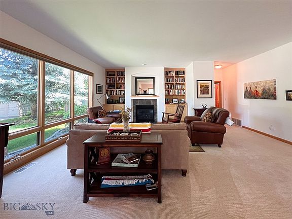 Welcome to the Bridger Creek condo, where an open floor plan creates an inviting space perfect for entertaining. The living room features custom built-ins and a cozy fireplace, adding warmth and character to the home. The spacious Master suite offers a private retreat, complemented by two additional guest bedrooms and a bath. Step outside to enjoy a private patio, surrounded by mature landscaping that enhances the serene atmosphere. The trail system through the golf course seamlessly connects with the East Gallatin Recreation Area, offering endless opportunities to golf, hike, bike, or ski right from your doorstep.