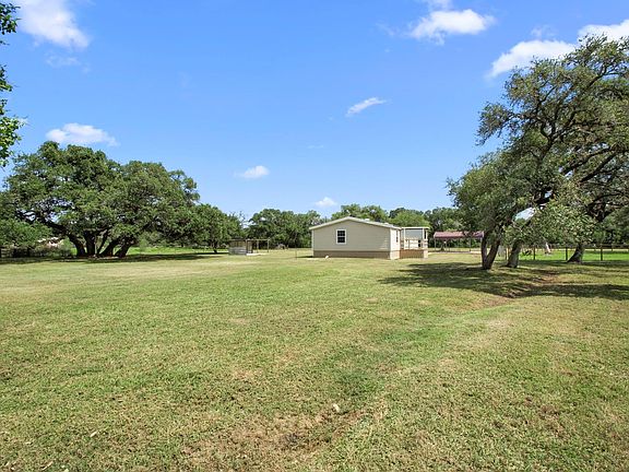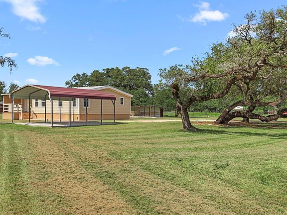 The property has healthy mature oak trees spotted within the one acre property. Metal cart port with room for two cars! Come see it today