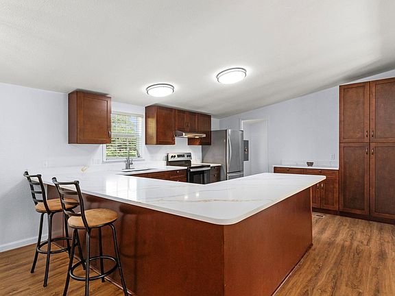 Ready for country living? This beautifully & fully remodeled home comes with all appliances and is ready for you to call your own!! The moment you walk into the living room you feel the openness; natural light pouring in and will fall in love with the fully remodeled kitchen. The kitchen has brand new Whirlpool appliances, soft close cabinet drawers, rich wooden shaker style cabinets and tons of storage space. The rooms have all had a fresh coat of paint, newly installed wood laminate flooring and new energy efficient windows. The primary bedroom is separate from the other bedrooms allowing for full privacy with a newly remodeled & updated primary bath with gorgeous glass shower enclosure, new countertops and fixtures. The secondary bathroom has also had a complete renovation with new tile surround, new cabinets, new sink, countertop and fixtures.