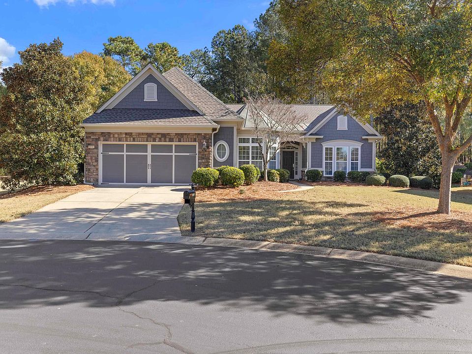 This large Cumberland floor plan in Del Webb at Lake Oconee sits on an incredible lot with a spectacular deck that overlooks a huge private green space in the backyard. The privacy makes you feel like you are in the mountains. The home offers 2743 square feet. Three bedrooms plus a separate office and 2.5 baths set the stage for overnight family and friends. Two heated and cooled living areas give everyone a space to relax. Kitchen and bathroom cabinets have recently been professionally painted to give the home a fresh updated feel. The extra deep garage features an extra four feet of width perfect for a golf cart. Owners also added permanent stairs leading up to the storage space over the garage. This area is insulated plus has sheetrock on the walls. Another room off the four seasons sunroom features easy breezy windows and gives this home an extra space for covered dining or another sitting area. You won’t find a better value with this much space in such a gorgeous home or with such privacy from a lot anywhere in Del Webb!
