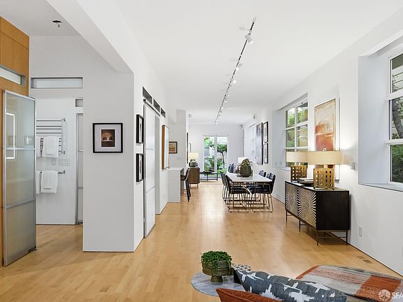 If you love the energy of a loft but dream of living in Noe Valley, this exceptional garden residence offers the best of both worlds. Set amid lush greenery, this tranquil urban oasis features expansive windows framing verdant garden outlooks of your deeded yard, creating a seamless connection between indoor comfort and outdoor serenity. The open-concept floor plan showcases unobstructed sightlines, refined finishes, and a flexible sleeping area. The designer kitchen is beautifully appointed with new custom cabinetry, quartz countertops, a Thermador refrigerator, and an industrial-style range perfect for the discerning home chef. An inviting dining area and generous living space provide an elegant setting for entertaining, complemented by abundant built-in storage. The updated bath is finished with quartz counters and modern cabinetry, while a spacious walk-in closet offers exceptional storage. Additional highlights include a Murphy bed for guests, a powder room, in-unit laundry, and dedicated storage units in the garage. Just outside is your private, deeded garden an idyllic retreat perfect for morning coffee or an afternoon in the sun. One-car parking completes this rare and stylish offering in one of San Francisco's most desirable neighborhoods.