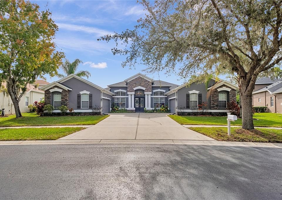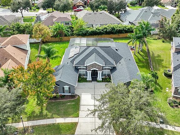 Welcome to an impeccable residence in the desirable, gated Diamond Hill community. Nestled within a section for enhanced privacy and larger homesites, this home sits on a generous 16,000+ sq ft lot and showcases thoughtful updates throughout. Meticulously maintained and tastefully refreshed by the current owners, the home welcomes you with a grand entry, spacious foyer, 10-foot ceilings, crown molding, and beautifully curated finishes. A rare 4-car garage provides exceptional storage, workshop possibilities, and everyday convenience, an elevated feature seldom found in any community. Designed for both comfort and function, the home offers 4 bedrooms, 3.5 bathrooms, an office, and nearly 3,000 sq ft of living space. The split-bedroom layout enhances privacy for both residents and guests, while the flexible formal dining room, currently styled as a bourbon room, adds character. Renovated bathrooms, updated flooring, fresh interior paint, shiplap accent walls, and tray ceilings blend cohesive design with everyday comfort. Energy efficiency is a hallmark of this property, highlighted by fully paid-off solar panels (2019) that contribute to stable electric costs, alongside major system upgrades including a new roof (2021) and new HVAC (2020). Indoor living transitions seamlessly to the outdoors, capturing the essence of Florida living. Enjoy a large, covered area, a spacious pool deck, and a sparkling pool and spa, all supported by new pool equipment and enclosed by a newer pool cage (2016). The fully fenced backyard provides additional privacy and versatility for day-to-day enjoyment. Diamond Hill offers an impressive amenity center overlooking the community’s golf course, complete with a pool, fitness center, basketball courts, playground, and clubhouse. Located approximately 30 minutes to Downtown Tampa, 20 minutes to shopping and dining in Brandon, and about one hour from major Central Florida attractions, this home delivers a balance of tranquility and convenience in one of Valrico’s most established gated communities.