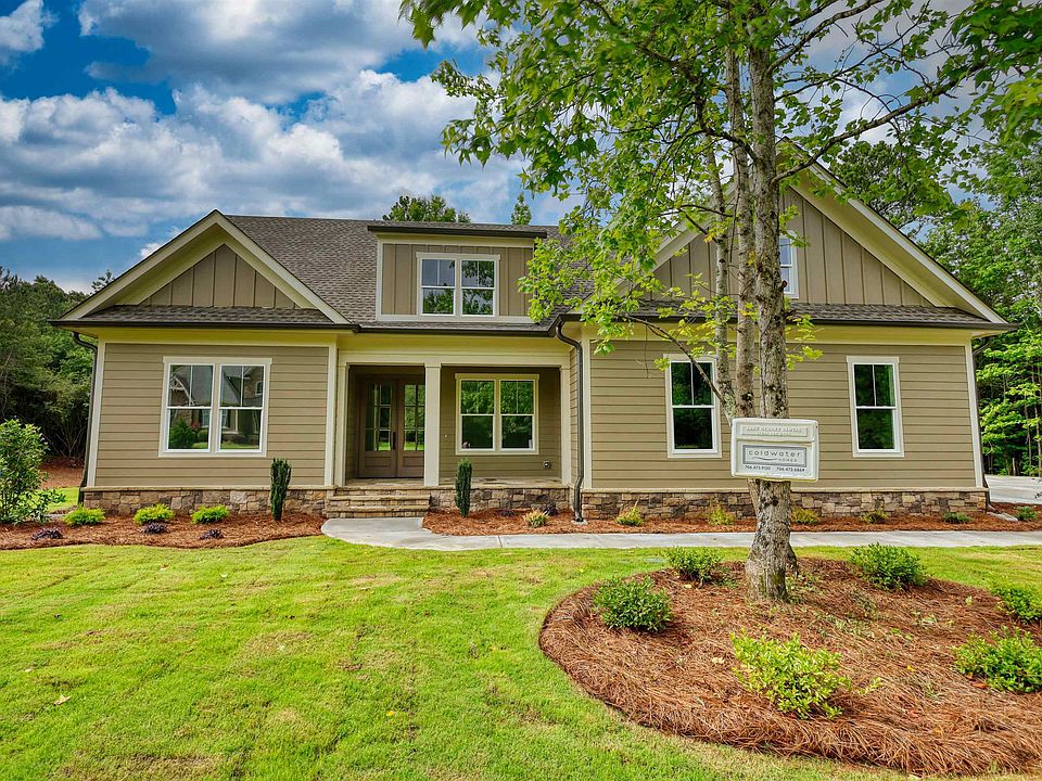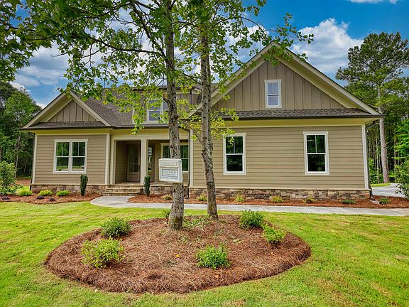 Beautiful new construction home offered within the desirable Graham Ridge subdivision. Just a short 10-minute drive into the heart of downtown Madison, this property offers the perfect balance between quiet country living and convenient proximity to everything Madison has to offer. Situated on an open 1.29 acre lot, this home invites you in with stately double doors and a beamed-ceiling foyer. To the right of the foyer is a generously sized flex room ideal for an office or study. To the left of the foyer is the first of four generously sized bedrooms, as well as a full bathroom. Continuing further into the home, vaulted ceilings adorned with wooden beams welcome you into the spacious open concept living room, kitchen and dining area. The gas starter fireplace offers a cozy focal point in the room and is echoed by an additional fireplace just outside on the back porch. White cabinets accented by a black center island and granite countertops provide ample prep and storage space within the kitchen. A full GE Cafe Series stainless steel appliance package adds a touch of sophistication. The primary suite is 18X18.5 ft with a beamed ceiling and an abundance of natural light, providing an ideal retreat for relaxing after a long day. The luxurious en-suite bathroom features an expansive tile shower with dual shower heads and double walk-in closets. A laundry room just off of the two-car garage completes the main floor. On the second level, two additional large bedrooms and a full bathroom ensure any guests or family members will have plenty of space and privacy. Carpet has been laid in the secondary bedrooms upstairs since photos were taken.