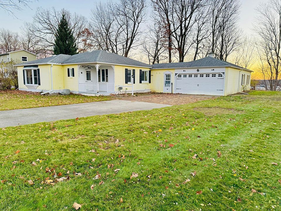 Welcome Home to this Affordable Ranch Style Home that is Situated on a Large Lot in the Desirable City of Portland. Nestled on Top of a Bank of The Grand River, the View of the River from Your Back Yard is Breathtaking and Serene. Upon Entering, You will Find a Large Mudroom that Connects the House to a Huge Three Seasons Room. The Gally Kitchen, which Includes a Refrigerator and Newer Range, Connects to the Spacious Dining Room (New laminate flooring is being left for the kitchen). Flowing Through, You are Lead into the Massive Living Room which is Anchored by a Cozy Electric Stove. There is also an Additional Room that could Easily be Converted into a Second Bedroom. The Bright Bathroom has New Flooring, Vanity, and Stool- 2022. Many Windows were Replaced in 2022 as well. The Roof is Approx. 4 Years Old. The Huge Attached Garage can Easily Hold Two Vehicles, with Plenty of Additional Room for Storage. There is also a Large Shed Out Back that could House all of Your Lawn/Gardening Tools. Sold as-is.