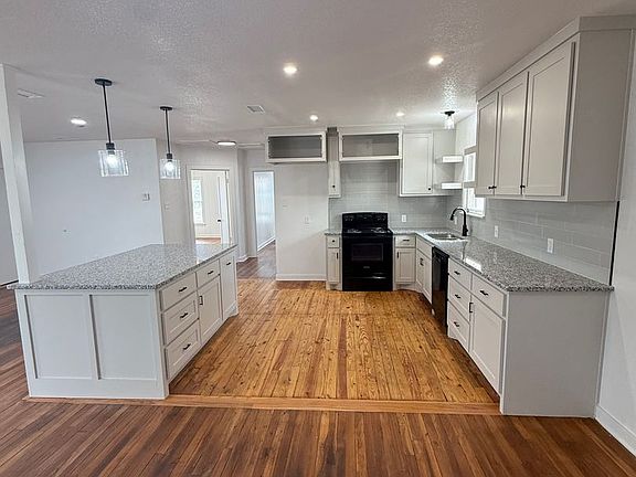 - Exterior features: Large Fenced Backyard, Open Concept Kitchen, Storm Shelter, Tiled Bathrooms, Totally Renovated