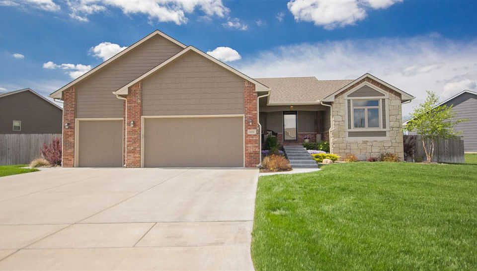 Beautiful 5 bed, 3 bath home in west Wichita with Maize schools! This home has an open floor plan that you will absolutely love. The living room is wide open to the kitchen and dining room. The warm colored hardwood floors throughout the home are so inviting! The kitchen has a large island with the kitchen sink in the middle. There is a breakfast bar area as well. You will enjoy the large, walk in pantry and stainless steel appliances. The master bedroom is off of the kitchen. It has tray ceilings, a large en-suite and a walk-in closet! There are 2 more bedrooms and a full bath on the main floor. Downstairs you'll find a large family room with a wet bar - perfect for entertaining! There are also two additional bedrooms and a full bath. The backyard is absolutely beautiful! The covered wood porch and patio is perfect for get togethers! The backyard is large and fully fenced! Call today for your private showing!