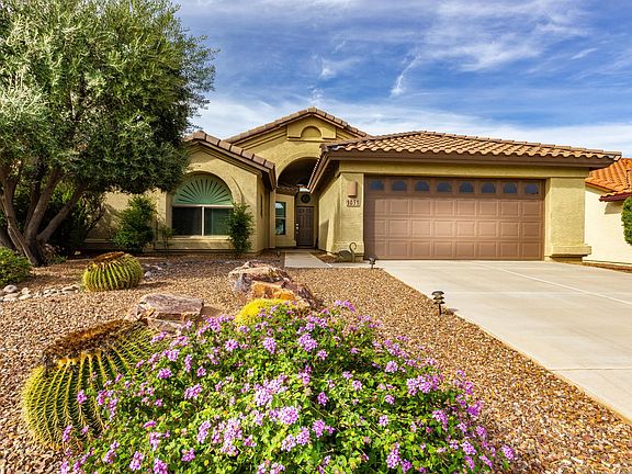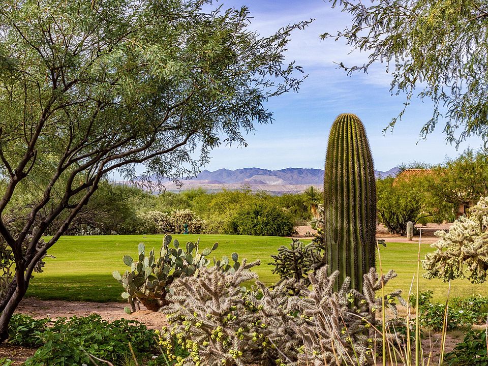 Quail Creek Golf Course Lots are currently only available with existing resale homes, as there are no golf course lots for new construction. With mtn views that frame the yard, this is the Heritage 2 BR, 2 BA plus den. Walls are painted with SW accent colors. Large master BR w/ en-suite master bath has charming bathtub, shower, dual sinks & walk-in closet. A sliding door leads to the back patio and that gorgeous view of Coyote Hole 5 & the Santa Rita's. Guest BR is adjacent to a full bath. A den, family room and great room provide plenty of space for TV watching, reading, or working Kitchen has dining area, built-in desk and pantry closet. Windows throughout the house allow light from all directions. Backyard landscaping includes a grapefruit tree. Enjoy the sunset & all Quail Creek offers.