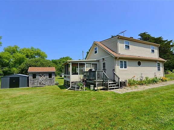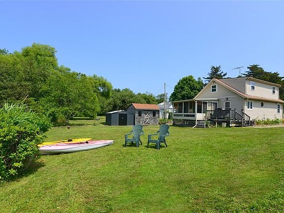 Have you been dreaming of owning a waterfront cottage where you can launch your small boat or kayak from your backyard and fish for Atlantic salmon, trout, bass and more? If so, your new home awaits at 1031 Old Stafford Road. Situated on .25± acres with direct waterfront access on renowned Stafford Pond, 480± acres known by anglers and boaters for offering two miles of quiet water paddling and recreational fishing opportunities. The first floor of the cottage is comprised of an open first floor plan, mini-split ac’s, living room with wood burning fireplace that currently has a propane insert, kitchen, dining room, full bath with jetted tub and a stackable washer/dryer unit. The first floor is finished by a four seasons sunroom with sliders out to the back deck and yard overlooking the water. The second floor features the two bedrooms each with a mini-split air conditioner with heat pump. Nestled between a mixture of woodlands on the Western edge and residential homes to the east, Stafford Pond offers public boat ramp access a stones throw away also along Old Stafford road, the Department of Environmental Management stocks the pond annually and seasonally, including in the winter for ice fishing and enforces a 10hp motor limit. Two-bedroom OWTS has been approved by the Town of Tiverton and DEM that will convey with sale, installation of new system before closing is negotiable. A .94± acre abutting parcel and garage is also available for purchase, see MLS#1340941.