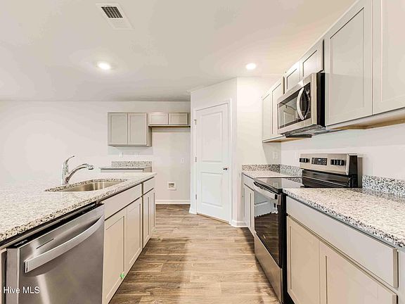 CEDAR HILL LANDING-NOW SELLING! The Cali is our most popular one-story, 4-bedroom home, featuring an open-concept living area that leads to a kitchen equipped with Stainless Steel Appliances, including a smooth-top electric range, microwave, and dishwasher. As you enter, you'll find three bedrooms with a shared bathroom, while the Primary Bedroom, off the living area, offers a private ensuite bathroom. This home combines a functional layout with quality finishes, making it a great choice for those seeking a modern ranch-style design. Enjoy the covered porch perfect for entertaining and enjoying the Carolina evenings. Home Is Connected® Smart Home Technology is included in your new home and comes with an industry-leading suite of smart home products including touchscreen interface, video doorbell, front door light, z-wave t-stat, & door lock all controlled by included Alexa Pop and smartphone app with voice! Located just south of Wilmington with easy access to I-140 & Hwy. 17, you'll love the short commute to all the areas recreation and attractions. Love shopping and dining? You'll find all the popular shops and local eateries just a short drive to the heart of Leland & downtown Wilmington. Homeowners will enjoy a pavilion with resort style swimming pool, hot tub, fire pit, multi-game sport court, sand volleyball, and recreation field. Come see this brand new, Brunswick County new home community! The photos you see here are for illustration purposes only, interior and exterior features, options, colors and selections will vary from the homes as built.