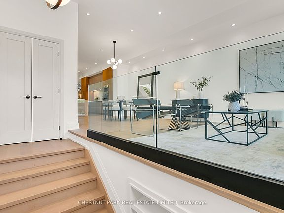 Tucked away on a quiet, tree-lined cul-de-sac in coveted Upper Forest Hill, this custom-built home offers over 3,500 sq. ft. of meticulously crafted living space. Designed with both sophistication & function in mind, every detail has been carefully considered to create a residence that is as stylish as it is welcoming.Step inside & feel the sense of light & openness that defines the main floor. Soaring 10 ceilings & expansive windows flood the living & dining spaces with natural light & sleek finishes set a tone of understated luxury. At the heart of the home, the kitchen impresses with a striking waterfall centre island, premium integrated appliances & storage, the perfect balance of beauty & utility. The family room, anchored by a modern gas fireplace & stone facade, opens seamlessly onto the deck & backyard. The architectural glass & wood staircase rises gracefully to the 2nd level, where 3 skylights brighten every step. The primary bedroom is a sanctuary, featuring a generous walk-in closet & a 5-piece spa-like ensuite with a deep soaker tub, double vanity & heated floors. 3 additional bedrooms are well-proportioned, sharing a contemporary 4-piece hall bath, while a convenient second-floor laundry adds ease to everyday living.The lower level extends the homes living space with incredible versatility & feels like a main floor with a walkout to a covered patio & nearly floor to ceiling windows. A spacious rec room, complete with a wet bar, provides the ideal backdrop for casual entertaining. A 5th bedroom & full 3-pc bathroom are perfectly suited for guests, while the mudroom with rough-in for a 2nd laundry & direct garage access & heated floors enhances convenience.This home is more than just a beautiful place to live - its a lifestyle. A true blend of modern design, thoughtful function & Perfectly located near top-rated schools, the shops & restaurants along Eglinton & convenient TTC access.