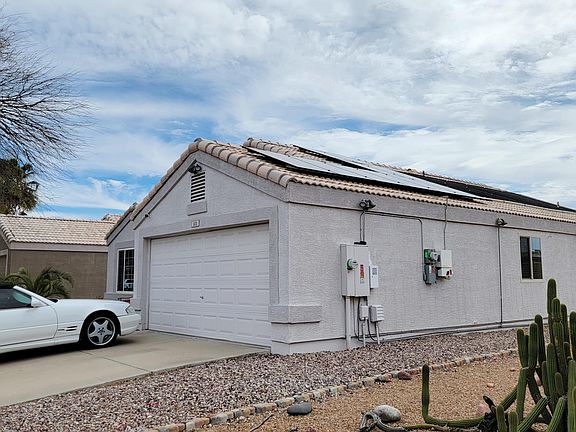 Air Conditioned and Heated Salt Water Pool! Swim away year-round in your private heated and cooled pool with a Heat Pump installed in late 2020 dedicated solely to the pool. Owned Solar Panels help offset utilities. You will love this spacious Single-Story home in desirable Sunrise Canyon with No Carpet. Updates throughout including a huge Kitchen/Dining space with Quartz Countertops and Stainless Appliances.