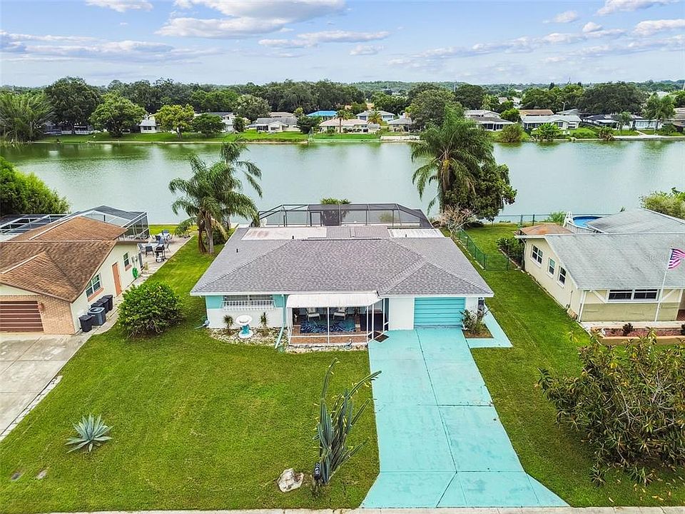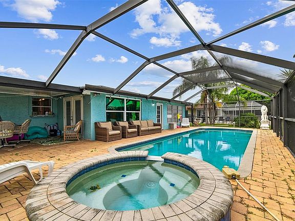 Discover the perfect blend of comfort and Florida lifestyle in this spacious 3 bedroom, 2 bath pool home with stunning lake views. Nestled on a quiet street, this property offers a welcoming front porch, double parking, and a beautifully landscaped yard. Inside, enjoy a bright family room with large windows, a versatile dining area, and tile flooring throughout. The oversized primary suite features a generous closet and a retro inspired en suite bath with classic blue and white tile. A large kitchen with a pass through window to the porch makes entertaining effortless. Multiple living areas including a Florida room and a flexible family room with sliders create endless possibilities for relaxing or hosting guests. Step outside to your private oasis: a covered patio, sparkling pool with mosaic details, and tranquil lake views perfect for paddleboarding or simply unwinding. With three spacious bedrooms, ample storage, and an indoor laundry area, this home has it all inside and out. (ROOF-2021)(W/H-2020)(A/C-2012)(UNREPAIRED SINKHOLE-2008)