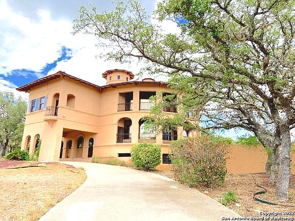 Capture the Stunning Views in your Custom Built 5 bedroom, 3.5 bath Hill Top View Home in the hills of Helotes. Stone Fountain graces the entrance beneath the GRAND Spiral Stair Case. Saltillo tile, granite and gorgeous oak floors throughout. Half moon stucco fireplace warms the family rm. A Chef's kitchen to die for. Spacious master bedrm & bath. Don't miss the walk-in WINE closet!! Multiple balconies and covered patios overlooking the pool, hot tub and grand views. 1.37ac, rot iron fencing, circular drive. One of a kind GEM! Welcome Home!!!