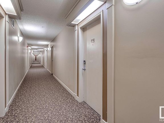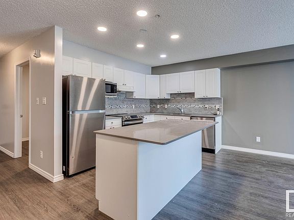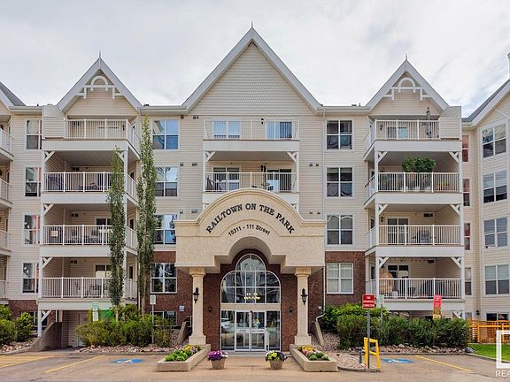 Welcome to this beautifully situated condo in downtown Edmotnon. This well-maintained home features an open-concept layout with a modern kitchen, complete with a central eat-up island, quartz countertops, tile backsplash, upgraded appliances, and vinyl plank flooring. The living area opens onto a large, west-facing covered patio with a gas line for your BBQ, perfect for enjoying sunny evenings. The generous primary bedroom offers his-and-hers closets with direct access to the full bathroom. A versatile den, along with a roomy in-suite laundry and storage area, adds to the functionality. Freshly painted throughout, this unit is move-in ready. Enjoy the convenience of a titled, heated underground parking stall with a storage cage. The building is well-managed with professional management and offers excellent amenities, including a fitness center and guest suite. Ideally located in the heart of the city—just steps to shops, restaurants, public transit, Grant MacEwan, and the Ice District. Virtually staged.