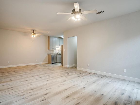 Newly renovated half duplex with 3 bedrooms, 2 full baths and a 2 car garage. Open floor plan with a wood burning fireplace. Stainless appliances and a spacious dining area. The master bedroom is large enough for a king sized bed, and the master bath boasts a large vanity, walk-in closet, and linen closet. The secondary bedrooms are split from the master. The small backyard has an open patio and is surrounded by a new, wood privacy fence.