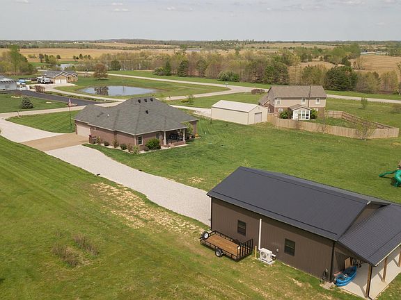 Looking for a beautiful ranch-style home with land? This 2015 Thompson-built brick home on 2.5 acres could be the one! Featuring the popular Arlington floor plan, 9’ ceilings, and newer LVP in the living room and owner’s suite, this home offers both style and comfort. The open concept layout is ideal for entertaining or relaxing mornings, and the kitchen is a dream with granite countertops, a spacious island, large pantry, and stainless steel appliances. The split bedroom design adds privacy, and the primary suite impresses with a tray ceiling, tiled shower, garden tub, dual vanities, and an oversized custom shelving walk-in closet. Need flexibility? The glass-door room is perfect as a home office, playroom, or hobby space—tailor it to fit your lifestyle! Outdoor living is a breeze with a large covered front porch, a rear deck, and a 30x40x12 heated and cooled pole barn in 2022, complete with its own half bath and freestanding porch. Additional features include an electric heat pump, garage with pull-down attic storage, and fresh landscaping. This is truly a must-see home!