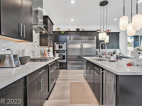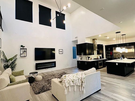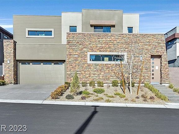 Nestled in the exclusive gated community of Oluna in South Summerlin, this stunning residence offers a perfect blend of modern design and serene desert beauty. Surrounded by scenic mountain views, green parks, and endless walking trails, the neighborhood is designed for both relaxation and recreation. Step inside to discover an airy open-concept layout with soaring ceilings and abundant natural light. The primary suite, conveniently located on the first floor, features direct access to the courtyard and sparkling pool. Upstairs, a spacious loft and generously sized bedrooms provide comfort and versatility, along with a balcony ideal for soaking in mountain vistas. Outdoor living is effortless with multiple spaces to entertain or unwind from the private courtyard and covered patio to the expansive side yard with a luxurious pool and spa. This home is truly a retreat built for modern living.