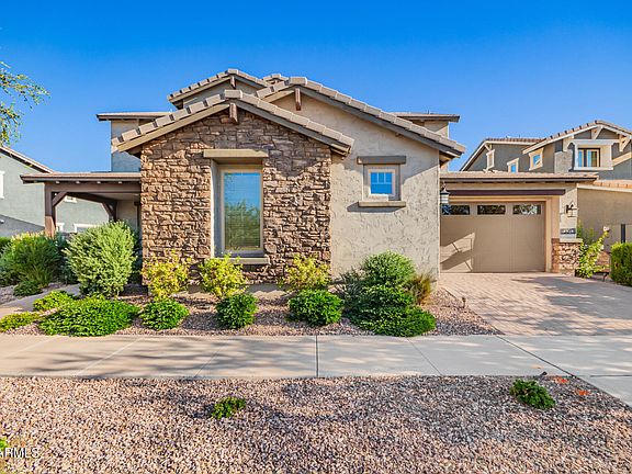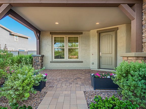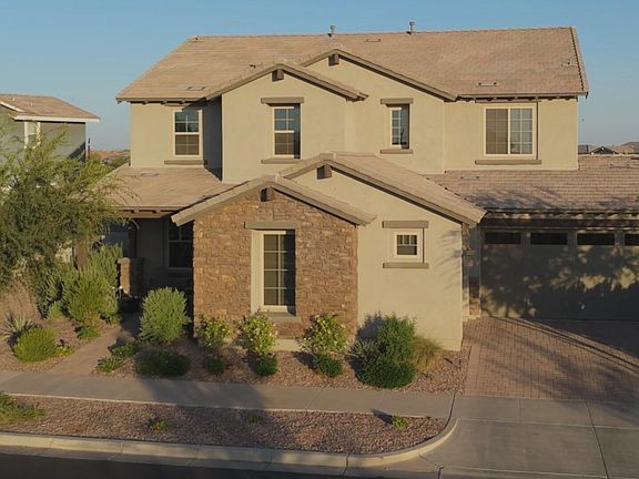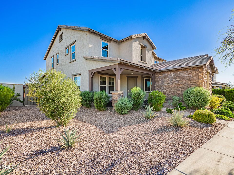 Your dream home is finally within reach! This gorgeous 6-bedroom, 4.5 bathroom residence welcomes you with a 3-car garage, stylish pavers, a stunning stone facade, and an inviting front patio. Discover a captivating great room with high ceilings, a soothing palette, recessed lighting, and attractive wood-look flooring. Host memorable dinner gatherings in the formal dining room. The gourmet kitchen comes with quartz counters, crisp white cabinetry with crown moulding, a tile backsplash, stainless steel appliances, a butler's pantry, and an island with a breakfast bar for casual meals. You'll also find a sizeable loft that provides a versatile space to fit your lifestyle. The luxurious primary bedroom features soft carpeting, an ensuite with double sinks, and a walk-in closet. Spend enchanting evenings in the lovely backyard, showcasing a covered patio, a charming gazebo, a fire pit for evenings under the stars, pristine artificial turf, a spa, and a refreshing pool. Make this gem yours now!