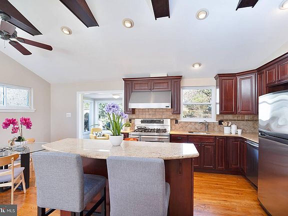Offer deadline set for Thursday, April 3rd, at 5 PM. Welcome to 10313 Inwood Ave, a beautiful split level in the highly desirable Forest Estates. The main level boasts a seamless flow between the open concept living room, dining room, and kitchen with hardwood flooring, highlighted by vaulted ceilings with exposed wood beams and recessed lighting. The kitchen features granite countertops, 42-inch cabinetry, stainless steel appliances, and an island with a breakfast bar. A large picture window floods the living room with natural light. The sunroom, located off the dining area, features ceramic tile flooring, a convenient side door opening to the fenced yard and patio, and peaceful views of the backyard—perfect for relaxing. On the upper level, there are three generously sized bedrooms with hardwood floors and a luxurious full bathroom, complete with a jetted tub, standing shower, double sinks, and ceramic tile flooring. The lower level provides even more living space, including a cozy carpeted recreation room with a wood-burning fireplace and built-in shelving. The lower level also has a convenient laundry room, additional full bathroom, rear door to the fenced back yard, and tons of extra room for storage in the crawl space. Great location! Under a mile to the Forest Glen metro station (red line) and access to 495, perfect for commuters. Walking distance to Sligo Creek Trail and multiple parks. Close distance to all the shopping and restaurants in Downtown Silver Spring and Wheaton. Don't miss this opportunity!