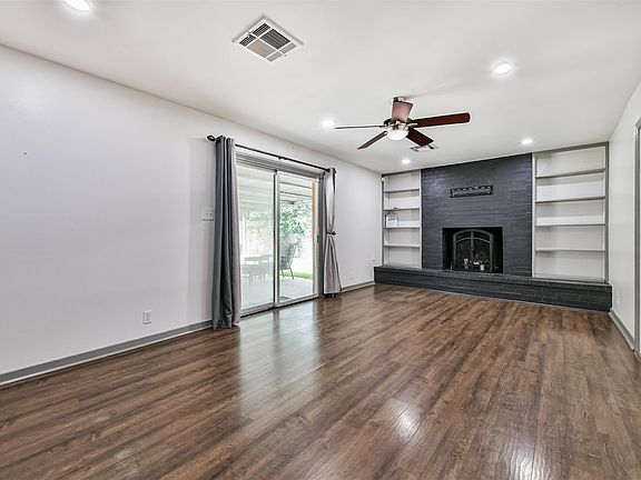 Back fenceLarge covered patioStainless steel appliancesBuilt in shelvesGreat size backyardPlenty of storageFarmhouse sink