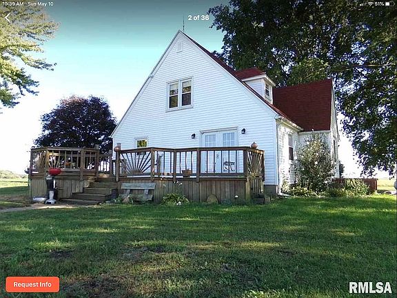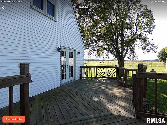 If you have any questions feel free to call/ text me at (309) 253-0622. Very private & peaceful country setting located about 15 minutes outside of Pekin on 2.32 acres with large 26 x 24 ft garage and even a larger 24 x 40 ft Ragland building with concrete floor & 12 x 12 ft sliding door. The charming 3 bedroom home offers beautiful hardwood floors, arched doorways, very spacious living room, formal dining room has French doors leading out to a large 24 x 12 ft deck, convenient main floor bedroom and lots of updating including: windows, bathroom, high efficiency furnace, shingles and there's 220 wiring in the outbuilding, garage & house. During EXTREME weather conditions, access to the house can be affected. When this happens, the water typically only last 1 to 4 days and this doesn't happen every year, including it didn't happen this year or last year. The water can surround the house, but doesn't come up to the house because it sits at a higher evaluation.