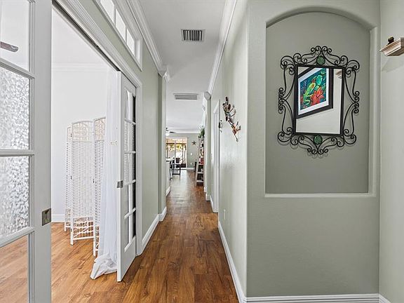 BACK ON MARKET DUE TO BUYER FINANCING FALLING THROUGH - PRICED BELOW APPRAISED VALUE * Located in the highly sought-after Belmont community, this beautifully maintained 4-bedroom, 2-bathroom, 2-car garage home is packed with updates and modern features that make it truly stand out. The home offers peace of mind with a BRAND NEW ROOF & PAID OFF SOLAR PANELS, keeping monthly electric bills incredibly low. It is GENERATOR READY, with an interlock for easy connection to a portable generator. A NEW WATER HEATER in 2023, and a WHOLE HOME WATER SOFTENER SYSTEM adds to the home’s efficiency and comfort. Inside, the home is finished with granite countertops in both the kitchen and bathrooms, laminate wood flooring throughout (NO CARPET ANYWHERE), and crown molding in every room—including hallways and bathrooms. Five-inch baseboards, updated light fixtures, new faucets and hardware, and newer sinks and toilets add a clean, modern touch throughout the home. One of the standout features is the converted formal living and dining space. Professionally enclosed, it serves as a flexible bonus room—perfect for a home office, gym, media room, or playroom, currently used as a 5th bedroom. The pocket doors and transom window give both privacy and natural light, making this space both functional and inviting. The primary bedroom has 2 closets, an ensuite bathroom with dual sinks, a shower and a garden tub for the ultimate relaxation experience. The outdoor space is equally impressive with an upgraded irrigation system featuring a new control panel, replaced sprinkler heads, and additional lines added to support backyard landscaping or gardening. The garage is also equipped with mounted storage racks for added convenience. LOW CDD AND LOW HOA AND FLOOD ZONE X. Located in a vibrant, amenity-rich community with 2 community pools, playgrounds, tennis and basketball courts and tons of walking and biking trails. Location Perks, less than 5 miles to grocery stores, shopping, and I-75, Apollo Beach is under 5 minutes away, Tampa is only 25 minutes, & Award-winning beaches like Anna Maria, St. Pete Beach, and Clearwater are within an hour.