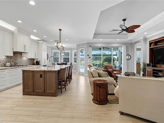 A truly beautifully reimagined 3-bedroom + den, 2.5-bath residence that blends timeless design with modern luxury. In 2018, the owners partnered with Randall Mitchell Builder for a complete renovation, featuring a redesigned kitchen, updated bathrooms, and a refreshed pool and outdoor living area.” full interior renovation, thoughtfully redesigning the entire living space for open flow and refined living. The kitchen and main living areas were reconfigured by removing walls for a open floor plan, complemented with elegant trim work. The chef’s kitchen boasts custom cabinetry, a walk-in pantry with electrical outlets, Wolf and Sub-Zero appliances, beverage and wine refrigerators, and a custom bar with beverage cabinet—perfect for entertaining. The master suite features a completely reimagined bathroom and a California Closets-designed walk-in, while the additional full and half baths have also been fully renovated. Plantation shutters add warmth in the dining area, second bedroom, and office. Outdoor living shines with a redesigned pool, hot tub, and travertine pool deck. Recent enhancements include Storm Smart retractable hurricane shutters (2018), low-voltage outdoor lighting (2019), new lanai screens with a picture-frame full-view enclosure (2024), new pool heater and pump (2023), and fresh exterior paint (2022). Additional upgrades include: replaced HVAC and water heater, new soffits with concrete treatment (2024), Tesla garage charger (2024), electric dog fence, and more. This property is truly move-in ready, offering peace of mind with major systems and features already updated—all within the highly desirable Via Romano community.