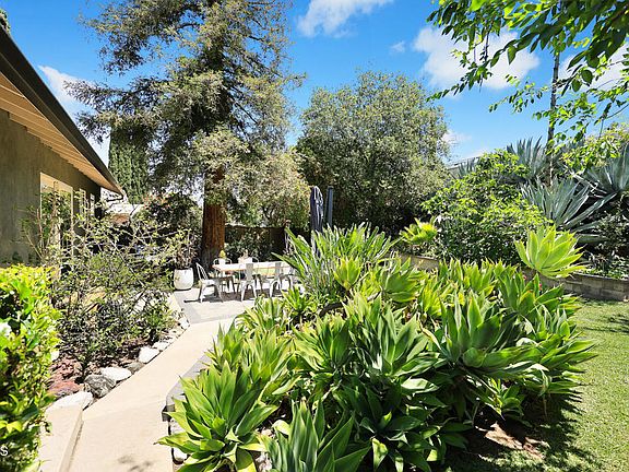 This charming California residence sits on a quiet, tree-lined street in Sunland, blending classic curb appeal with extensive modern upgrades. Surrounded by mature trees and drought-tolerant landscaping at every step, the home offers incredible outdoor living with a spacious front yard, an updated backyard paver patio and a lush garden featuring a fig, grapefruit, meyer lemon, and lime tree combined with supersized agave, palms, and a redwood! The front yard boasts equally vibrant landscaping with highlights being a giant diadora, palm, and a second fig tree. The yard features a smart Rachio irrigation system to optimize water care and solar lighting for the evenings.Inside, the open-concept layout seamlessly connects the living room to the updated kitchen, complete with stainless Whirlpool appliances, pull down Kraus faucet, wood cabinetry, and a breakfast bar overlooking the private backyard. Refinished hardwood floors extend throughout the living area and into two comfortable bedrooms located near a full bathroom. The majority of windows are Pella's high end wood framed dual-pane with built in blinds, and the home features central air and heat, as well as a tankless water heater, for year-round comfort.Additional recent improvements include a new roof with energy-efficient shingles, gutters, permitted seismic retrofitting, a full paver driveway, and widened front walkway with matching plant walls. A new drainage system with pipes on all four corners directs water safely to the street. Smart features include thermostat, range (stove/oven), lighting, doorbell, front door lock, flood lights, irrigation system, and overhead garage door for modern convenience. The two-car garage offers versatile potential as a home office, studio, or creative space. The backyard allows potential for expansion.Perfectly located just minutes from the freeway, nearby scenic hiking trails, local shops and cafes, this move-in-ready home offers the best of both lifestyle and convenience.