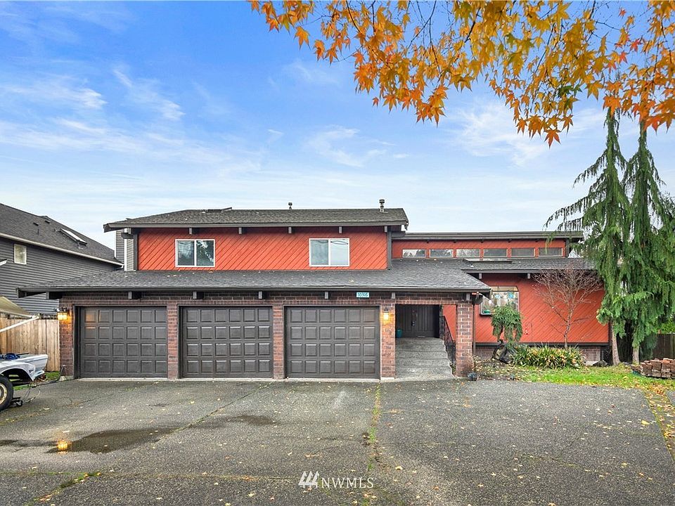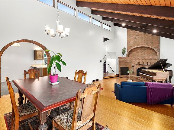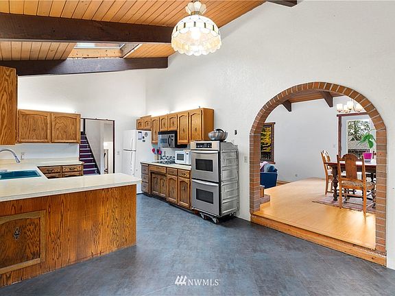 Beautiful Lake Stevens Home! This home boasts over 2500 square feet! Double door entry foyer opens to sunken living room, with vaulted ceilings with exposed beams. Brick fireplace for those cozy fall nights. Incredible amounts of light in the living room and formal dining area. The spacious kitchen is ready for an updated vision, skylights create a bright setting and plenty of work space. Upstairs, there are two bedrooms, PLUS an owners suite with en suite bathroom. The owners suite bathroom needs some finishing touches---make it to your liking! Also, the owners suite has a private deck, with views of Lake Stevens! Easy commute and Lake Stevens School Dist. 220amp service in garage, RV and BOAT parking! Pre-Inspected!