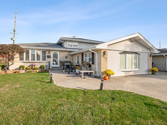 Welcome home to this stunning 4-bedroom, 2-bath split-level residence featuring a spacious 2.5-car garage and countless updates completed in 2022. Recent improvements include a new roof, AC, hot water tank, gutters, downspouts, and garage door with opener, plus a new garage roof - offering true move-in readiness and peace of mind. Step inside to discover a bright and airy floor plan, highlighted by a beautiful sunroom large enough for entertaining guests or hosting memorable holiday gatherings. The finished lower level provides additional living space with above-grade windows, a cozy Berber-carpeted family room, a laundry area, and direct walk-out access to the beautifully landscaped backyard. Enjoy summer entertaining on the professionally designed paver patio, surrounded by lush new landscaping, and a natural gas line for grilling. Meticulously maintained, this home boasts a charming brick paver drive and walkways, a security system with sensor lights and cameras, and inviting curb appeal. Conveniently located near public transportation, shopping, and dining, this home sits in the highly rated School District 123 (Kolmar Elementary) and is just a short walk to St. Linus School. Nothing to do but move right in and enjoy! Schedule your private showing today.