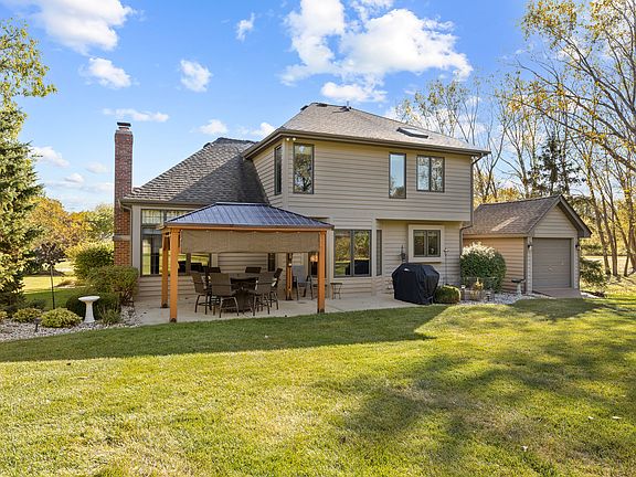 Well cared for Custom-built home with fantastic Curb Appeal nestled on a .75 acre, tree-lined property in one of Huntley's most desirable and best kept secret neighborhoods! Features Brick and Cedar Exterior Freshly Stained in 2021 ~ Inviting Covered Front Porch Ceiling with Stained Cedar Planks ~ Casement Windows with Newer Glass ~ Newer Roof (2013) ~ Hardwood Flooring ~ 6 Panel Doors & New Fixtures Throughout ~ Kitchen with Large Breakfast Bar, Corian Counters, Built-in Double Oven, Gas Cooktop, Crown Molding and Canned Lighting ~ Dining Area with Bay Window ~ Family Room with 10' Ceilings, White-washed Brick Wood-burning Fireplace with Gas Starter and Two Sun-filled Window Bays with Integrated Bench Seating ~ Formal Living Room could be converted to Main Floor Office ~ Master Bedroom with Trey Ceiling, Walk-in Closet and Updated Vaulted Bath with Skylight, Double Vanity with Granite Top, Whirlpool Tub and Separate Ceramic Shower with Glass Door ~ Three additional good size Bedrooms all with Ceiling Fans/Lights ~ Second Bath offers Double Vanity with Granite Top and Tub/Shower Combo ~ Main Floor Mudroom with Sink and Built-Ins ~ Finished Basement is Plumbed for Radiant Heat, offers Newer Luxury Vinyl Plank Flooring, Fresh Paint and New Baseboard Trim (2022) ~ Large Unfinished Storage Room with Washer/Dryer, Wash Tub and Mechanicals, plus a smaller finished Storage area ~ Water Softener (2024) ~ Oversized Concrete Patio with Gazebo ~ Outdoor Shed Electric Fence and Lush Landscaping enhanced with white stone accents and solar lighting creates a stunning, low-maintenance outdoor setting! Plus an oversized 2.5 Car Garage with Epoxy Flooring (2024), Newer Garage Door (2021) and Service Door to the Back Yard! All of this and so much more on a fantastic lot with incredible sunset views!