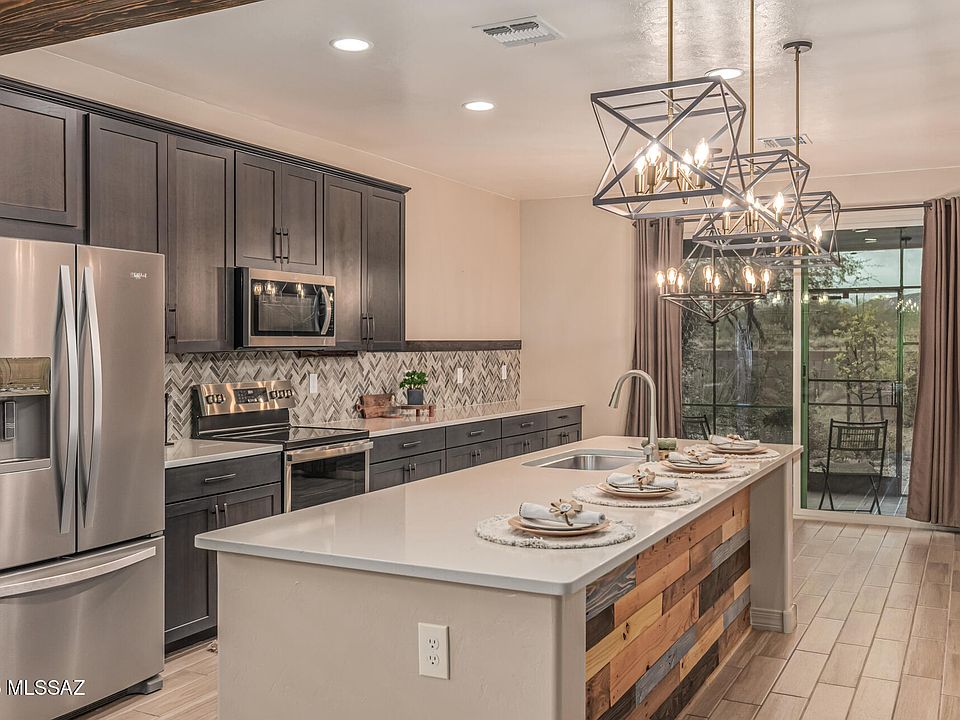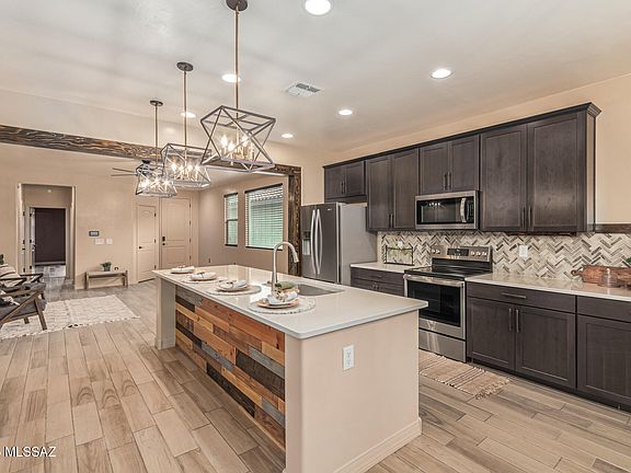 Welcome to your desert oasis! This beautifully maintained 2019-built home is nestled just minutes from the scenic Del Lago Golf Course and located in the highly sought-after Vail School District. Offering a perfect blend of style and function, this home features an open floor plan ideal for modern living, with custom real wood accents that bring warmth and character throughout.Step outside to enjoy the built-in patio--perfect for entertaining or relaxing year-round--surrounded by low-maintenance desert landscaping that creates a tranquil, resort-like atmosphere. Whether you're a first-time homebuyer, a family looking to grow, or simply seeking a peaceful retreat with thoughtful upgrades, this home is a must-see