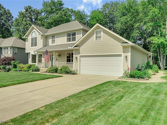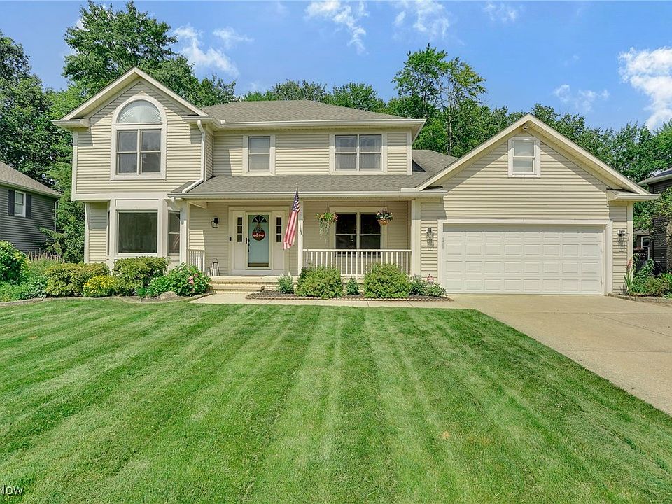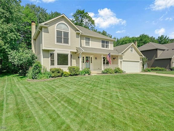 Welcome to this beautifully maintained front porch colonial located on the 16th fairway of Gleneagles Golf Course! A spacious foyer greets you upon entry with access to both the formal living and dining rooms. The large family room features a feature wall with a gas fireplace and stunning views of the treed backyard, patios and golf course, and it opens seamlessly to a generous eat-in kitchen with a center island and breakfast bar. The white kitchen is accented with granite countertops and includes all appliances. Hardwood flooring flows through the foyer, kitchen, dining room, and eating area. A convenient first-floor laundry room adds to the home's functionality. Upstairs, the spacious and light filled primary suite offers a vaulted ceiling, large walk-in closet, and a glamour bath with double vanities, granite counters, soaking tub, and separate shower. Three additional bedrooms share a well-appointed hall bath. Don’t miss the charming “secret space” on the second floor—perfect for a reading nook or play area! The finished lower level adds fantastic flex space with two rec rooms, a full bath, and abundant storage—ideal for a workout room, playroom, or additional guest suite. The oversized two-car garage provides even more storage options. Step outside to a spectacular backyard oasis with a multi-level patio, fire pit, pergola, and privacy fencing—perfect for relaxing or entertaining. The large lawn and mature trees offer privacy while still allowing views of the golf course. Move-in ready and perfectly positioned on the course—this home has it all!