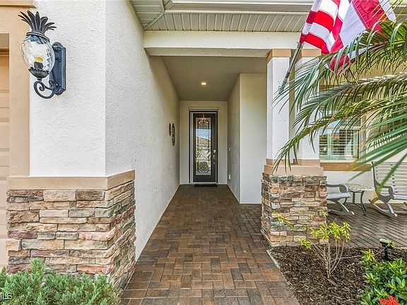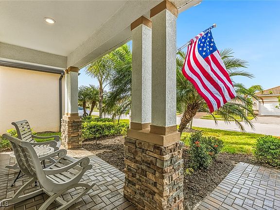 Experience the best of Florida living in this almost-new, completely upgraded 3-bedroom, 3-bath furnished home in the resort-style community of Pelican Preserve. Step outside to your oversized 20x23 screened lanai overlooking a serene cypress preserve. The lanai is beautifully framed by lush Christmas palms and holly, creating a private tropical oasis complete with a firepit for relaxing evenings under the stars. A welcoming front porch adds extra charm. Inside, the open floor plan flows seamlessly with tile floors, crown molding, and plantation shutters throughout. The upgraded kitchen features tile backsplash, granite countertops, white wood kitchen cabinets with wood pullouts, walk-in pantry and new dishwasher. The primary suite with private views of the preserve boasts dual closets with built-in organizers, spacious ensuite bath with dual sinks, huge walk-in shower with dual shower heads and bidet. The 2nd guest bedroom has an ensuite bath perfect for visiting family and friends. Both guest baths have newer glass shower doors. The 3rd bedroom is light and bright an is adjacent to the 3rd bath. Laundry room has new cabinets plus a front-load Samsung washer and dryer. The home is wired for a generator. Other features include motorized hurricane screens for the lanai and invisible screens front and back. Pride of ownership shows with this home, the owners have even proactively upgraded their tile roof with metal flashing in the valleys to be watertight for years. This home is truly move-in ready. Pelican Preserve offers the ultimate Florida lifestyle with resort-style amenities: lap pools, resort pools, several restaurants, attended fitness center with state-of the art equipment and fitness instructors, full-service spa, yoga and exercise classes. spa, active tennis and pickle ball programs, walking/jogging paths through the preserves. Meet your friends at yoga class, sitting by the pool or on the golf course. Golf carts welcome; optional golf membership is available at The Club at Pelican Preserve with 27 Holes of Championship golf. Pelican Preserve is conveniently located near RSW International Airport, the historic district of downtown Ft. Myers, Coconut Point Mall or Gulf Coast Town Center. Enjoy a quick trip to Bonita Beach, Sanibel or Ft. Myers Beach. Living in Pelican Preserve will make every day feel like a vacation!