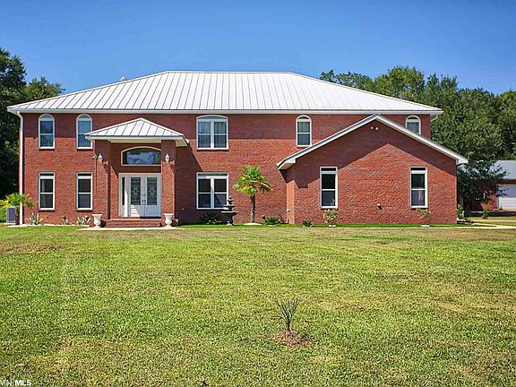 Income Potential as a Vacation Rental Home or as your very own private Resort Home. Beautiful with a grand entrance and living room that feature soaring 20' ceiling heights and iron rail balconies. Stone gas fireplace. Over 6700 square feet of living space which includes spacious bedrooms and bathrooms. Gourmet kitchen with gas and electric cooking, walk-in pantry, prep island, coffee bar with mini fridge, eating bar, breakfast nook and formal dining room. Step into luxury with the Master suite that features a custom stone, tile and marble walk-in shower, oversized jetted tub and double vanities. Choose either of the two beautiful oak staircases to take you to the second floor where you’ll find the guest bedrooms, guest suite with private bathroom, second laundry room and rec room with plush carpet and tongue and groove walls. Up to the 3rd floor, there is a large bonus room with private bathroom. The interior of the home was completely renovated and finished in February 2018. Not only beautiful but incredibly well constructed, insulated and efficient with solar water heater and high efficiency systems. An entertainer’s dream with nearly 4,000 square feet of screened-in outdoor living and dining space, complete with massive 20'X40' swimming pool with jetted cozy coves, full outdoor bathroom and an outdoor grilling kitchen. There is a feeling of quiet country when you walk outside to enjoy the open air or shoot some hoops on the large concrete basketball court. Attached climate controlled 2 car garage. Detached 30’X52’ (1,560 square feet) workshop/ garage. Great for horses. Boaters and Beach lovers, this home is 4 miles from the Lillian Boat Launch. Short drive to the nearest Gulf Beaches include Johnsons Beach FL, Orange Beach, AL and Gulf Shores, AL. Easy commute to South Baldwin Regional Medical Center, Pensacola, Pensacola NAS, US 98, Foley and the Beach Express.