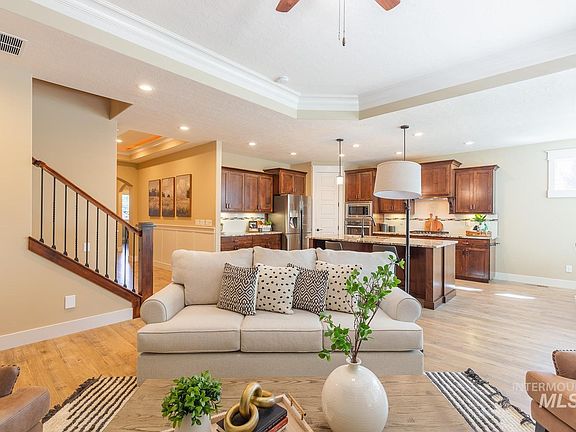 Where charm meets modern living, this beautifully maintained home in the Rockbridge neighborhood of Star, Idaho, is the perfect sanctuary. Nestled in a peaceful cul-de-sac, it features a spacious layout ideal for relaxation and entertaining. Step inside to a welcoming interior with modern finishes and meticulous upkeep. The open living area flows seamlessly into the outdoor oasis, where you’ll find a covered patio with BBQ hookups, elevated garden beds, mature landscaping, and shade trees, perfect for outdoor living. Key features include a beautiful kitchen with island and granite counter tops, great room concept with a stunning stone faced gas fireplace, and an impressive 1,256 SF garage with RV bay and storage loft. The split design offers a large master suite, 2 additional bedrooms, plus an upper bonus room with a half bath that could serve as a 4th bedroom or office. This exceptional home offers comfort, style, and charm! Schedule your private showing today!