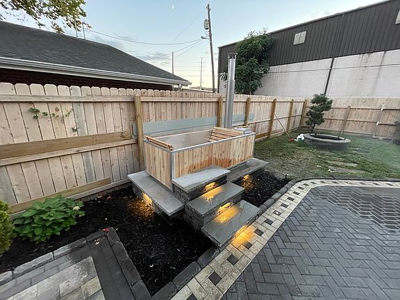 White oak hardwoodsPrivate balconyDesigner finishesAutomated irrigationStone fire pitWood-fired hot tub