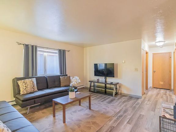 2 bed, 1 bath, fully furnished unit in a 4-plex. Great location in Fairbanks close to the hospital, shopping, schools, and Ft. Wainwright. Digital lock to private building entrance and digital lock to unit. Coin-operated washer/dryer in building ($1.50 per load). Internet, heat, water/sewer, and trash are included in the rent.