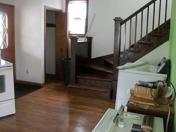 You can make this well maintained home your own! Home has great open front porch, and offers kitchen with plenty of cupboards, living and dining rooms with hardwood floors, open wooden staircase leading to the large bedrooms upstairs. There is a full bath upstairs and half bath on the main floor. Property is set on a deep lot, and has detached 1 car garage.