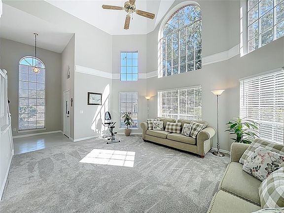 Welcome home to highly sought-after Alafaya Woods in Oviedo! This spacious, two-story family home, boasting over 2,400 square feet, sits on a truly oversized lot that is a nature lover's paradise. The extended driveway leads to a lush garden and a collection of young fruit trees, offering tranquility and a gardener's delight right outside your door. The home is move-in ready featuring brand-new carpet and fresh paint throughout. The large windows provide abundant natural light complementing a fantastic floor plan designed for modern living with a separate living room and family room, the latter anchored by a cozy wood-burning fireplace. The kitchen features bright white cabinets with granite counter tops and a reverse osmosis system for drinking water. Upstairs, the spacious primary suite with 2 walk-in closets offers a true retreat in the primary bathroom, which features a double vanity, separate garden tub, and private shower. Back downstairs, step out to your private, screened-in Pebbletec pool and enjoy the Florida sunshine from the relaxing covered lanai within the 2025 re-screened enclosure. Peace of mind comes standard with a new roof installed in July 2021, whole house re-piped in May 2024, new pool pump and equipment 2025, and the convenience of two new garage door openers in the 2-car garage. Enjoy the top-rated Seminole County schools and the fantastic community amenities that Alafaya Woods offers. This is more than a home—it's a unique lifestyle waiting for you!