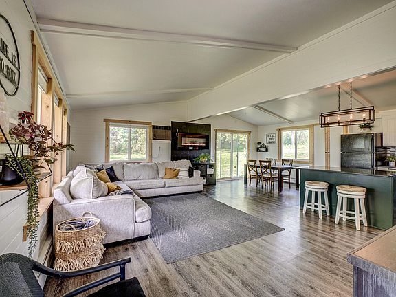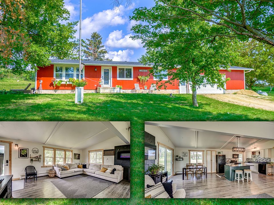 Beautifully refreshed rambler sitting on 1.5 acres of peaceful privacy. You'll love the open-concept floor plan with high vaulted ceilings, and natural light. Enjoy 360 views of farmland, a fenced-in yard, and outbuilding. Updates in 2022 include brand new roof and gutters, brand new dishwasher, custom blinds throughout the home, upgraded light fixtures, and relayed gravel driveway. Freshly painted, and new sliding door in 2021. New windows in 2019.