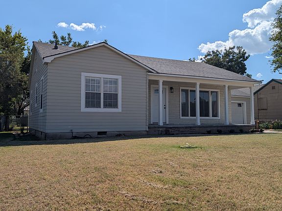 Conveniently located on east Broadway, a major thoroughfare when getting around. And Just a stones throw away from Jackson County Memorial Hospital. Restaurant location, grocery and convenience stores on the same street. Major improvements are many! All new: roof, driveway, back patio, exterior paint, some new windows, plumbing (F5 plumbing) GE appliances, gas stove, microwave, dishwasher, three door refrigerator, custom built kitchen by (Kenny Anderson), granite counter, soft close drawers, two lazy susans, food pantry, light fixtures, floating vinyl floor, doors, bifold doors in closets, carpeting, over stuffed attic insulation, HVAC system, air conditioner, furnace (Cantus HVAC) laundry is located in finished garage, operable garage door, garage door opener, gorgeous bathroom vanity, toilet, tub/shower, natural light private frosted window in bathroom, water heater, bedroom ceiling light fans with remote control, every inch of inside space has new paint. Breezy back patio, a bonus pad for grilling or lounging in back yard, attached storage room, This house is a cozy gem ready for tenants. Coming in 1/10/25