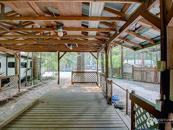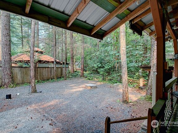 Make this property uniquely yours by bringing your own trailer to rest under the large enclosure. Enjoy the covered deck for socializing and communing with nature! This partially fenced lot backs up to lush greenspace for some added privacy. Enjoy the serene quiet around you! Paradise Lakes Country Club has a variety of amenities, including an indoor pool, playground, BMX track, rec center, bike tracks, and more. Conveniently situated for those who enjoy all Mount Baker has to offer.