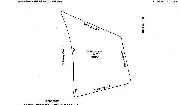 BEAUTIFUL CARRINGTON FAIRWAYS LOT LOCATED ON THE UPSCALE CARRINGTON GOLF COURSE. SPECTACULAR GOLF COURSE VIEW. TAX AMOUNT INCLUDES $88.57 STREETLIGHT ASSESSMENT . BATVAI ALL BUT ONE SMALL CORNER OF LOT HAS BEEN REMOVED FROM FLOOD PLAIN LOMA IN FILE