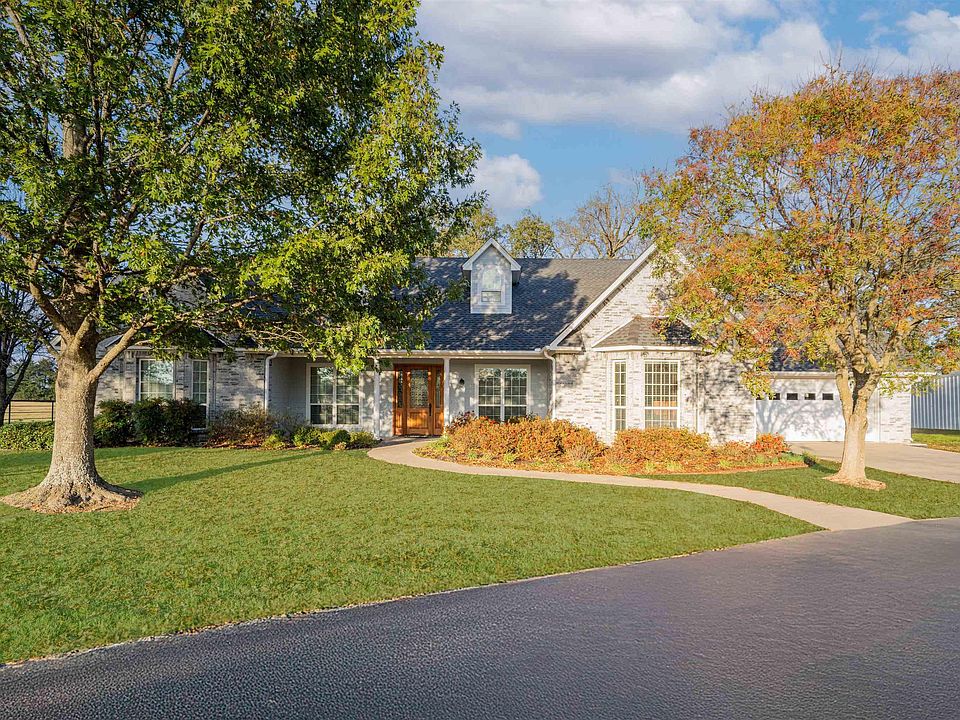 Beautiful custom brick home on 2.138 acres in a peaceful East Texas country setting, conveniently located just 10 minutes from I-30 and Mt. Vernon, 15 minutes from beautiful Lake Cypress Springs, and approximately 1.5 hours from Dallas. This spacious home offers an open-concept living area with vaulted ceilings, gas-log fireplace, and wet bar complete with ice maker and beverage cooler—ideal for entertaining. The dining area features a built-in buffet with granite countertop.The kitchen includes granite counters, farmhouse sink, two pantries. The laundry room provides excellent storage and includes a half bath. The primary suite offers a sitting area with bay window, large walk-in closet, and spa-style bath with double granite vanities and separate shower. A game room with pine paneling, Murphy bed, and closet can serve as a guest room. Nice office allows working from home. Enjoy outdoor living on the covered back patio. Additional features include a whole-home Generac generator, freshly painted exterior, approx. 1,080 SF workshop, 624 SF carport, and partial pipe fencing. A rare combination of comfort, functionality, and location in the heart of East Texas.