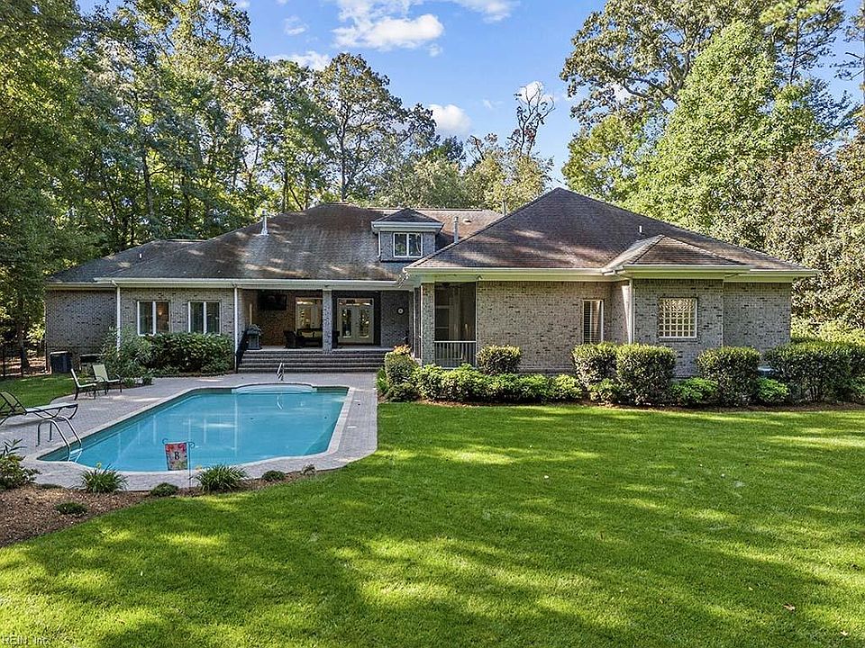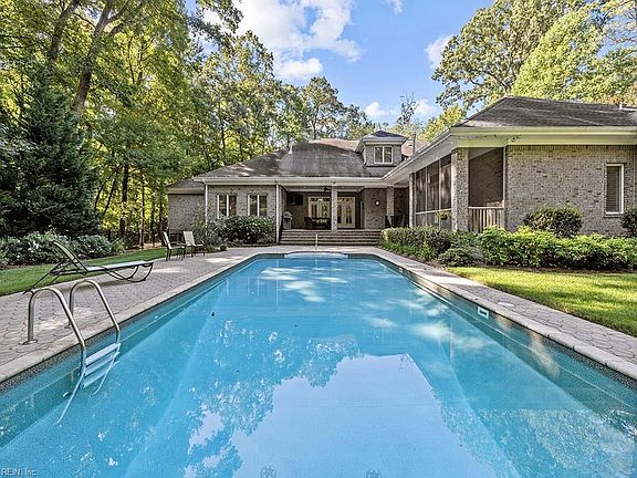Absolutely gorgeous ranch home in sought-after Little Neck! Situated on nearly 1.5 acres, this fabulous all-brick home features nearly 6,000sf of high-end details, including luxury shutters, indoor-outdoor surround sound, and five-zone HVAC. Gleaming cherry-wood floors welcome you to the large open-floorplan living area, which leads through the French doors to the meticulously landscaped yard complete with large in-ground pool, Travertine patio, screened porch, and covered outdoor living space with TV! Large upstairs den with counter bar and half bath is perfect for game days and movie nights, while the gourmet kitchen with double-oven, instant hot water, and upgraded countertops and cabinetry is a chef's dream. An outstanding feature is the complete in-law suite with additional bedrooms, bathrooms, living room, kitchen, garage, and private entrance- great for multi-gen living or extra space! A private oasis in one of the top neighborhoods in VB, the only thing missing is you!