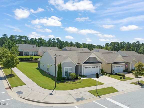 Discover one of the finest and best-value move-in ready ranch homes currently available in Wake Forest. Conveniently located in the premier and sought-after adult community of Del Webb at Traditions, this impeccably maintained and upgraded home boasts many custom features and recent updates, including new interior paint, fully finished garage with custom shelving and epoxy floor coating, a security/home automation system and much more. Featuring large rooms, high ceilings, an open floor plan, and beautiful and durable LVP throughout, this home creates a welcoming atmosphere perfect for everyday living and entertaining guests. The modern kitchen is sure to satisfy the culinary enthusiast, complete with a gas cooktop and wall oven, an island with additional storage and seating, granite countertops, and stainless steel appliances. Other highlights of this plan are the expansive master suite, a second guest bedroom, a dedicated home office/flex space, and an open living area that also opens up to the screened porch via a beautiful 3 panel glass doorway. Fiber cement siding ensures durability and aesthetic appeal while minimizing maintenance needs. The large 1/5 ac premium corner lot is perfect for those not wanting to feel overly squeezed between neighbors. Life in Del Webb includes access to a range of resort-style amenities, including the impressive clubhouse with fitness center and indoor pool, scenic walking trails, and well-lit streets for evening strolls. Additionally, the neighborhood's appeal is enhanced by convenient access to shopping centers, restaurants, and cafes, as well as nearby parks, recreational areas and fishing and hiking at the Reservoir. Experience the perfect blend of luxury, comfort, and convenience in this exceptional home. Schedule your visit today and see how this property stands out in Wake Forest and the Del Webb community as a premium property without the premium price.