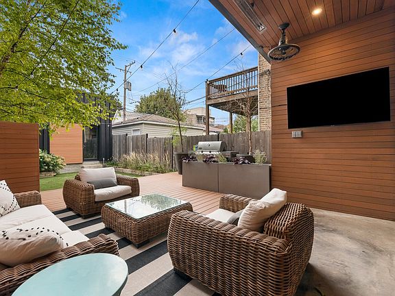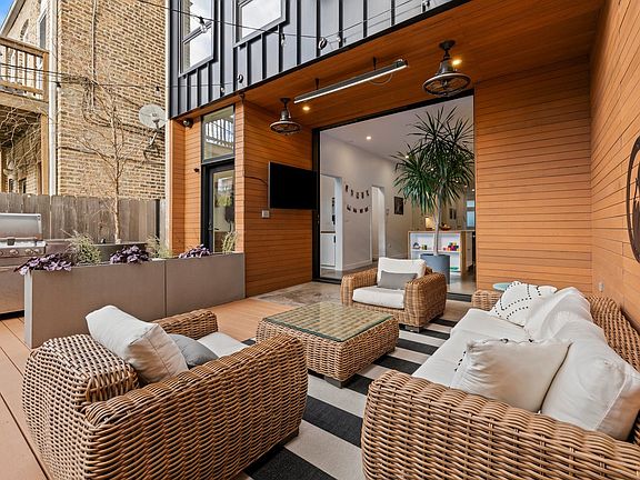Truly stunning custom remodeled SF home professionally designed with incredible outdoor spaces in prime East Village location, just steps to Division St restaurants, nightlife, shopping and the Division Blue Line! Featuring 4 levels of gorgeous living space, 5 bedrooms (coveted 4 beds up), 4.1 baths. This all brick historic home underwent a full renovation & addition in 2016; thoughtfully re-designed to fit a multitude of lifestyles. The main level boasts an expansive completely open layout connecting the beautiful main living interior to the large private backyard, boasting gorgeous deck space & a professionally landscaped yard - perfect for indoor/ outdoor living! Cook and entertain in style with your professional grade chef's kitchen boasting massive quartz waterfall island & breakfast bar, beautiful cabinetry, backsplash, and a large walk-in pantry equipped with wine fridge & organization. The mudroom offers the perfect entryway from the yard & garage. Also on this level is a generous dining area with wet bar, powder room, and formal living room. Second floor features a luxurious primary suite with high ceilings, custom organized walk-in closets, and gorgeous spa-like bath featuring floating dual vanity sinks and beautifully tiled walk-in shower complete with bench. 3 generously sized guest bedrooms, additional full bath, and laundry room complete this level. The third level boasts a super inviting family room/ flex space with skylights, full bath and walk out to the roof deck. Lower level is carpeted offering a large rec space and 4th full bath. Modern custom floor & tile selections throughout the home. Phenomenal outdoor spaces with additional fenced front patio. Home also has 2 car garage. Enjoy all that East Village, Wicker Park, West Town and Ukrainian Village have to offer in unbeatable location!